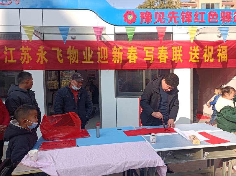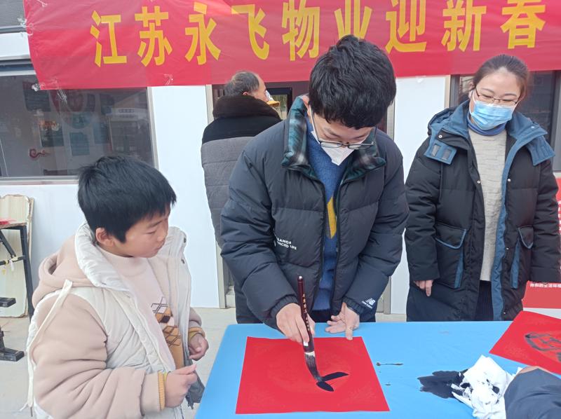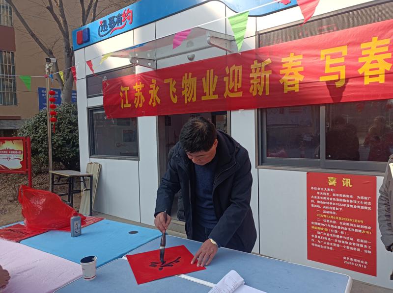 新春将至,为营造欢乐祥和的节日氛围,1月11日,江苏永飞物业管理有限公司总经理蔡万里在金色家园小区南门小广场开展义写春联活动,与业主欢聚一堂,写春联迎新年,为业主送上新春的美好祝福。