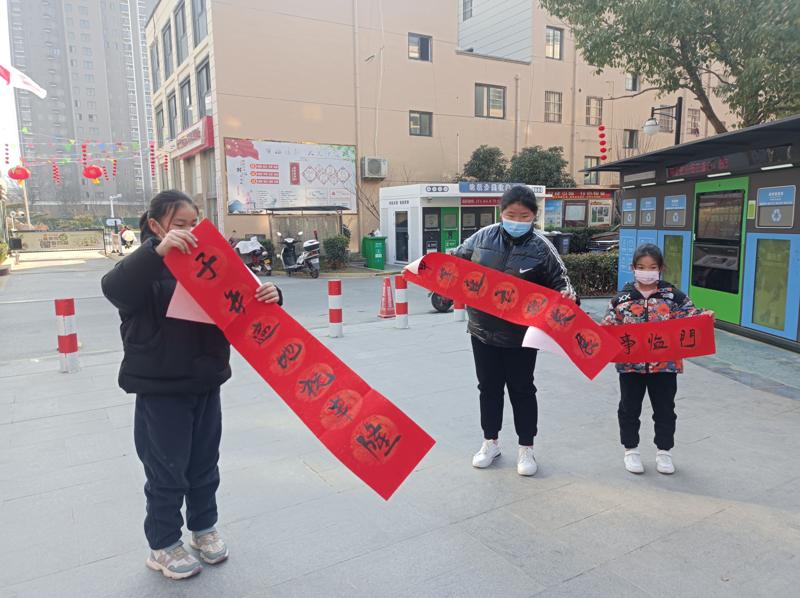 物业工作人员把写好的春联,放在房间里面晾晒,墨干就可以给大家发放了。小朋友们的晾晒热情也很高,俨然变成春联晾晒架了。