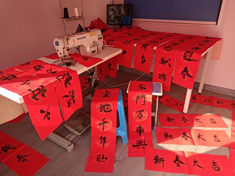 蔡总挥毫泼墨,一幅幅对联,福字呈现在红纸上,写出了对新年的期盼,满载着平安吉祥的祝福。