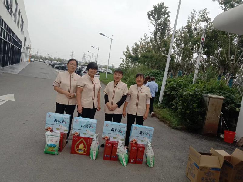 不知不觉间,又到了我们一年一度的中秋佳节。在这个象征着团圆、美满的时刻,江苏永飞物业有限公司全体员工感谢您一直以来对公司的默默付出和坚定支持。为进一步体现公司对员工的关怀,增强员工的凝聚力和归属感,特意为全体员工准备了中秋福利。 节日福利:公司为每位在职员工精心准备了一份节日福利,每位员工获得一盒精美的宿迁骆马湖鸭蛋,两盒多力葵花籽油,一袋5kg射阳大米。每位员工的礼品由其所在部门负责领取和发放,公司综合部协助完成此项工作。 让您在中秋之际感受到公司的浓情厚意。看看大家领到礼品多高兴。 以下是部分项目中秋福利发放现场