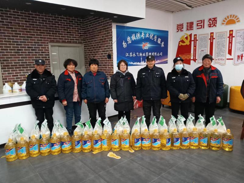 员工们纷纷表示,这样的福利非常实用,让他们感受到了公司的关心和关爱,也更加坚定了他们继续为公司的发展努力的决心。 江苏永飞物业有限公司是一家致力于为业主提供全方位、高品质物业服务的公司。公司注重员工的成长和发展,通过多种方式激励员工的工作热情和创新精神。此次福利发放是公司关心员工、回馈员工的具体举措之一,也是公司文化的重要组成部分。