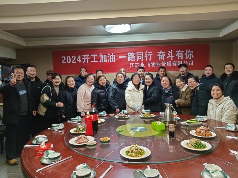 2024年2月26日,江苏永飞物业管理有限公司举行了开工会议,并在会议结束后组织了一场温馨的老员工退休仪式及聚餐活动。此次活动旨在加强团队凝聚力,明确公司目标,确保江苏永飞物业各项目能够健康有序地推进。