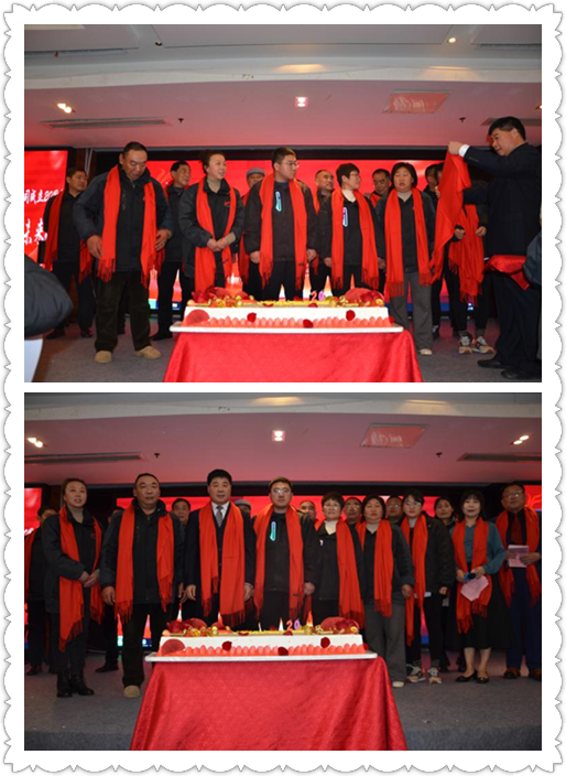随后,伴随着全场唱响生日快乐歌,蔡冉冉推出了江苏永飞物业20岁生日蛋糕,并邀请公司高层领导上台,蔡总亲自为大家佩戴喜庆的红围巾并切蛋糕合影。 ![]() ![]() ![]()