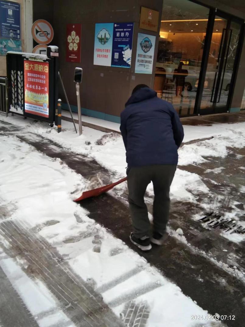 近日,宿迁连续降雪,小区路面出现明显的积雪及冰冻,对业主的出行造成影响。 江苏永飞物业有限公司提前做好应急预案,多举措保证业主出行安全。